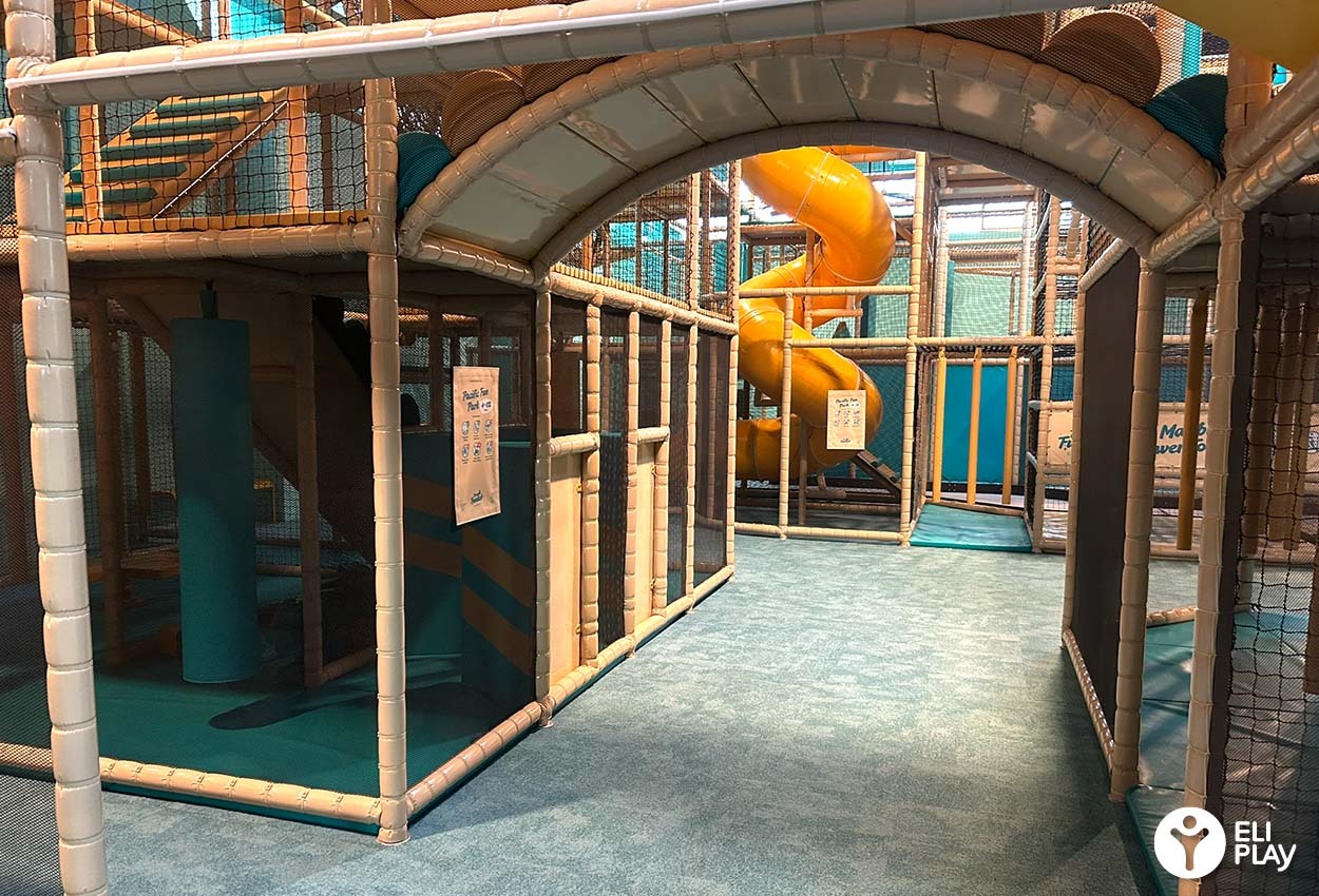 Auch die jüngsten Besucher kommen nicht zu kurz. In einer eigenen Kleinkindzone spielen sie sicher und altersgerecht. Diese Zone verfügt über eine kindgerechte Spielanlage, zwei kleine Rutschen, ein Bällebad und weiche Softplay-Elemente. Alle Materialien sind sorgfältig ausgewählt, um Sicherheit, Komfort und ein sorgenfreies Spielerlebnis für Kleinkinder zu gewährleisten.