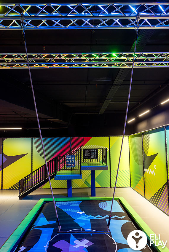 Der Jumpturm besteht aus einer robusten Stahlkonstruktion. Rund um die Stahlkonstruktion wird weicher Fallschutz verlegt. Beim Jumpturm ist ein Air-Bag im Lieferumfang enthalten.